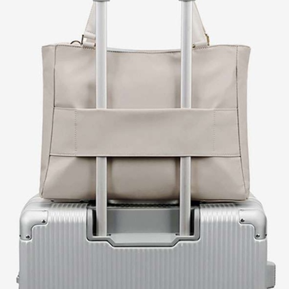 シンプル機能的なキャリーオン対応トラベルバッグ ベージュトート