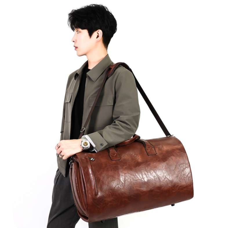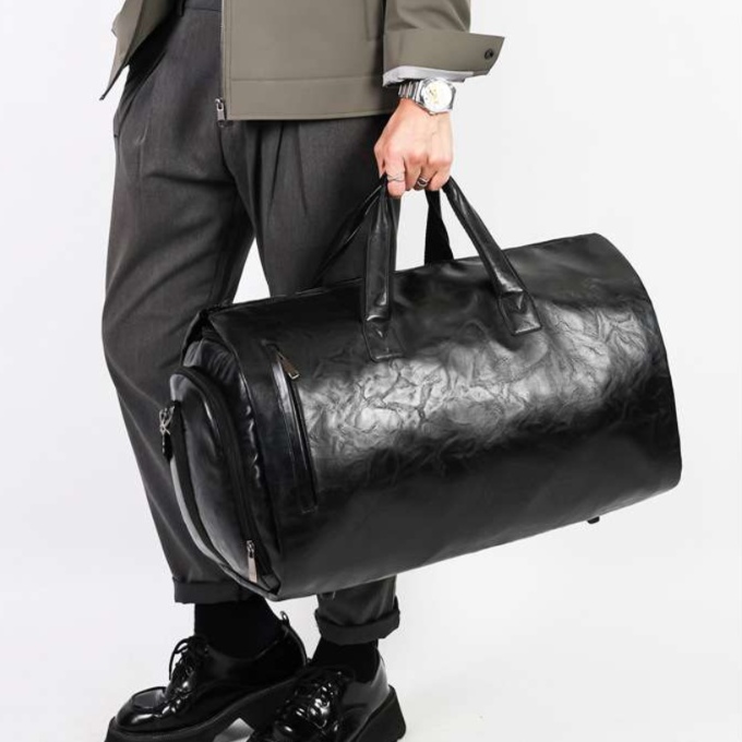 上質な素材で作られたボストンバッグタイプで、出張や旅行に最適。