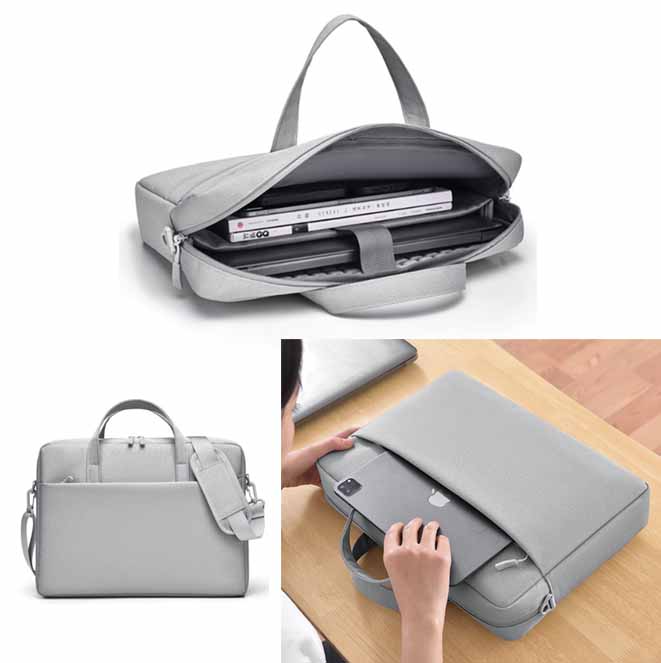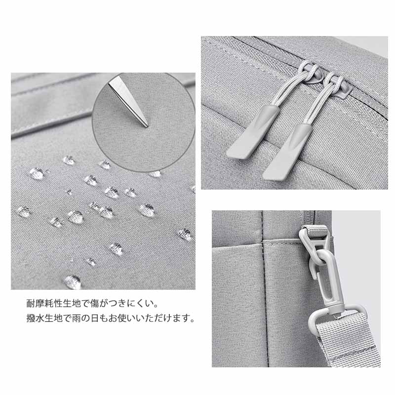 内側のクッション材がパソコンを衝撃からしっかり保護し、撥水加工で安心してお使いいただけます。