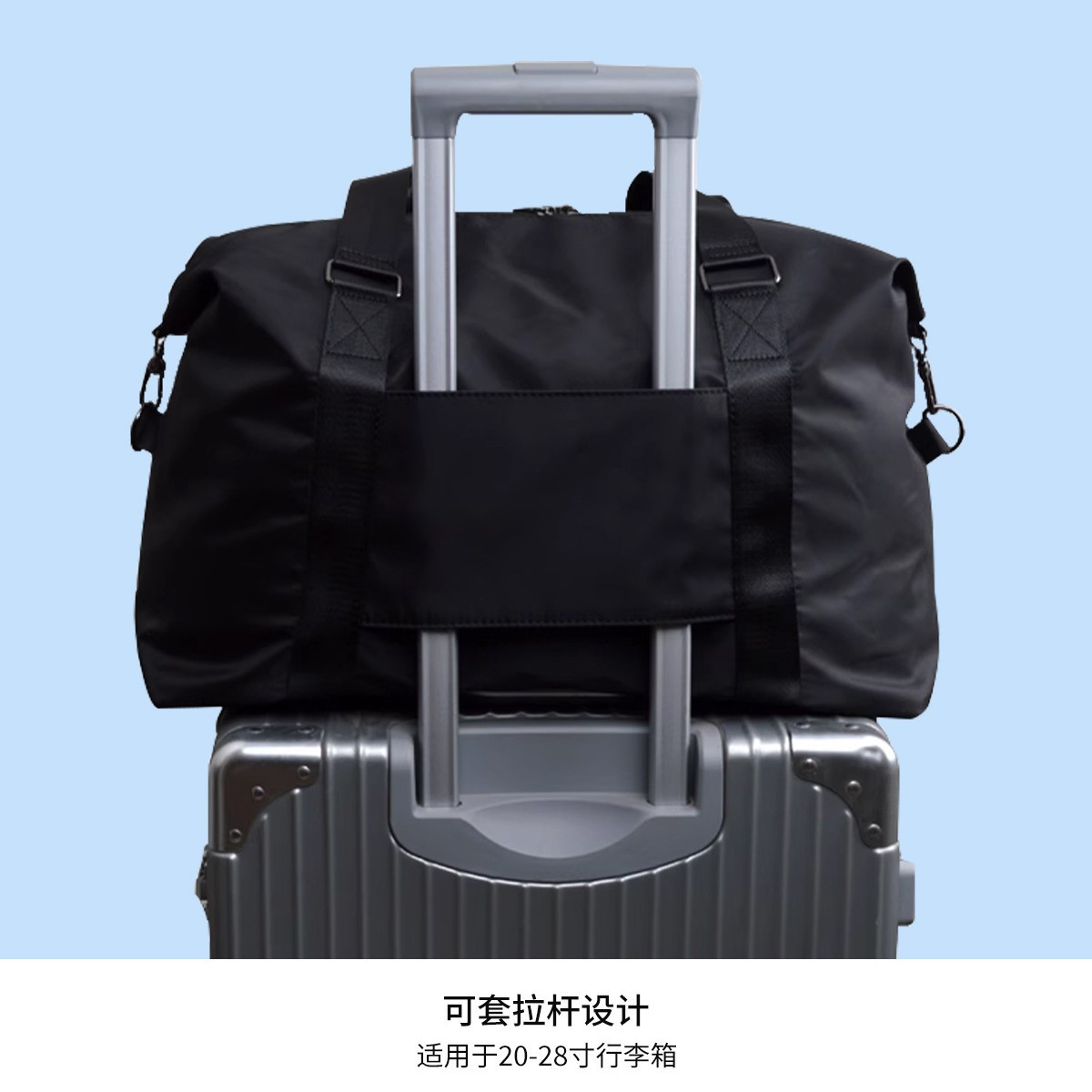 キャリーケースのハンドルに通せる背面ポケット付きで、スーツケースと一体化して持ち運びが可能です。