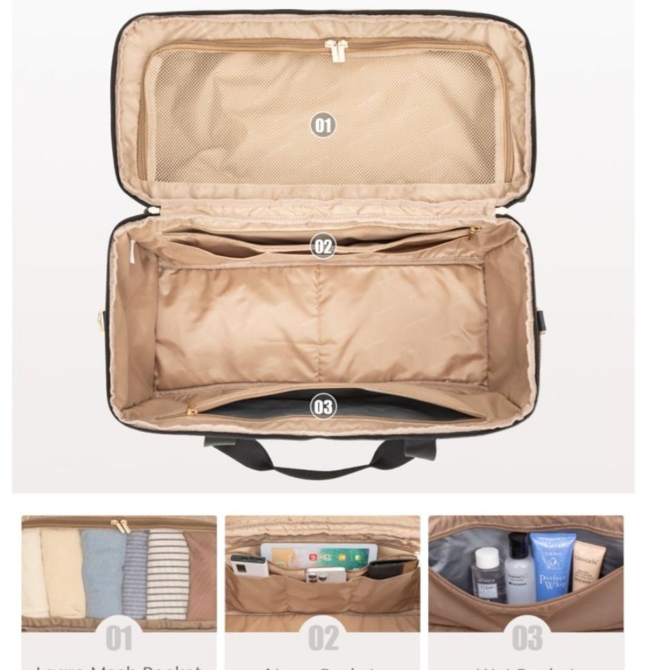 本体には大容量の収納スペースがあり、メッシュポケット、内側ポケット4つ、防水ポケットなど充実した仕切りで荷物を整理整頓できます。